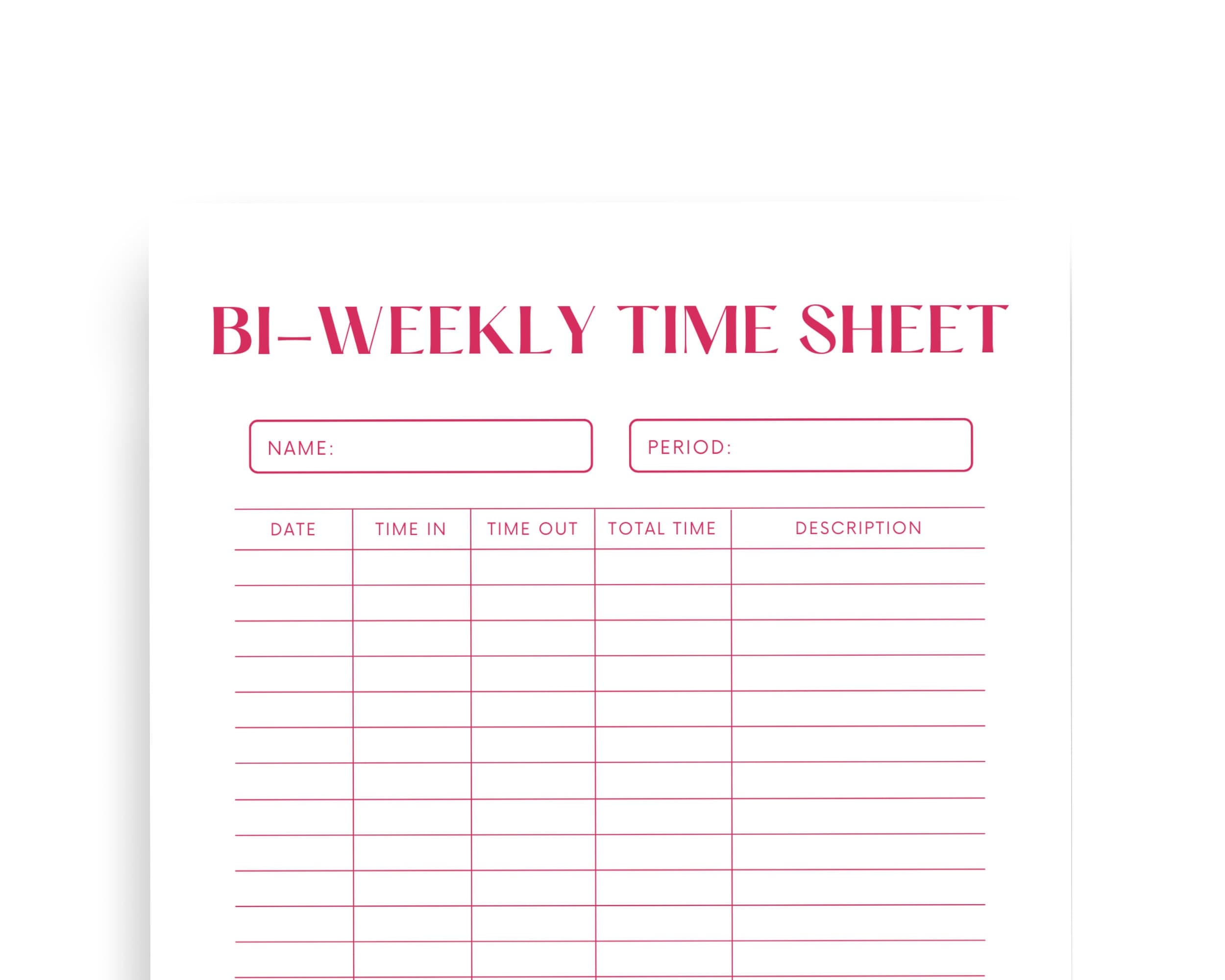 Biweekly Time Sheet Minimalist Time Sheet Private Contractor Office Resource Hourly Time Sheet Hot Pink Instant Download Etsy