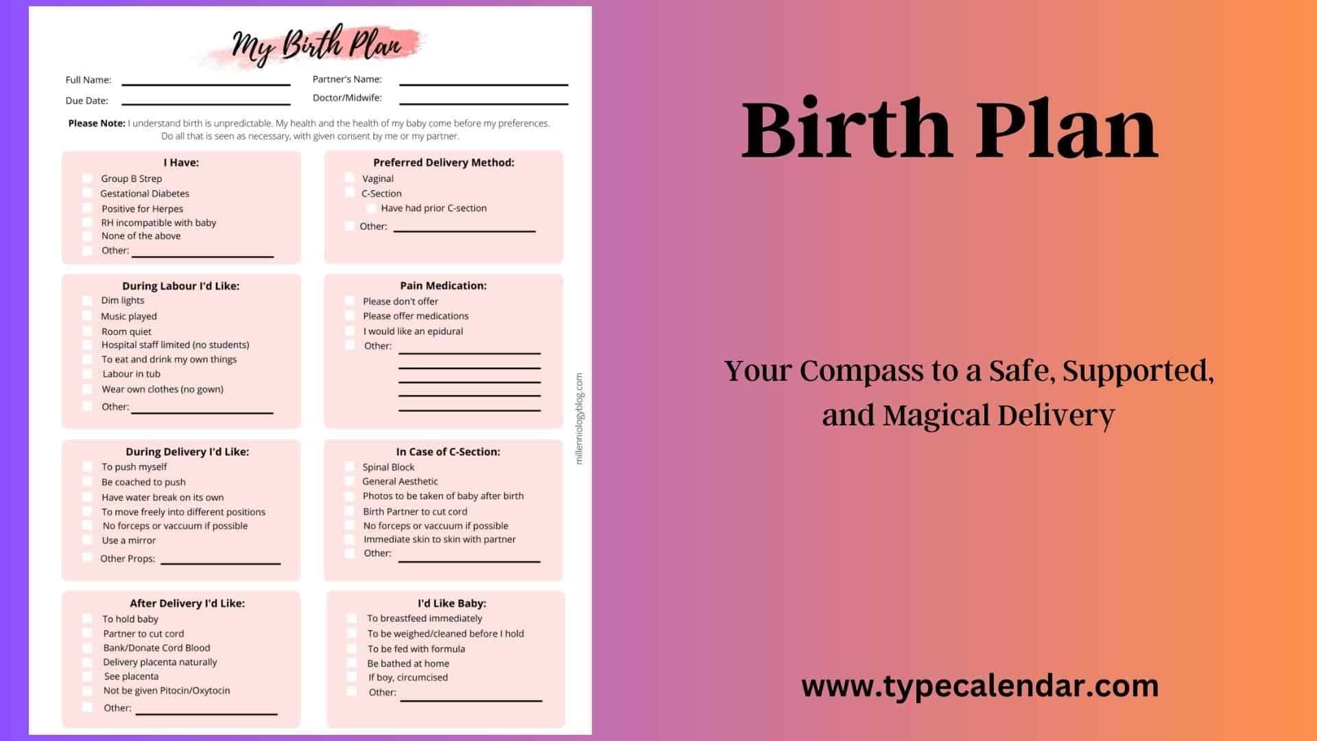 Whether you prefer a natural birth, are considering pain medication, or have specific cultural or religious preferences, a birth plan can help you feel more empowered and in control during the birthing process. Don’t hesitate to discuss your plan with your healthcare provider and make any necessary adjustments as your due date approaches.