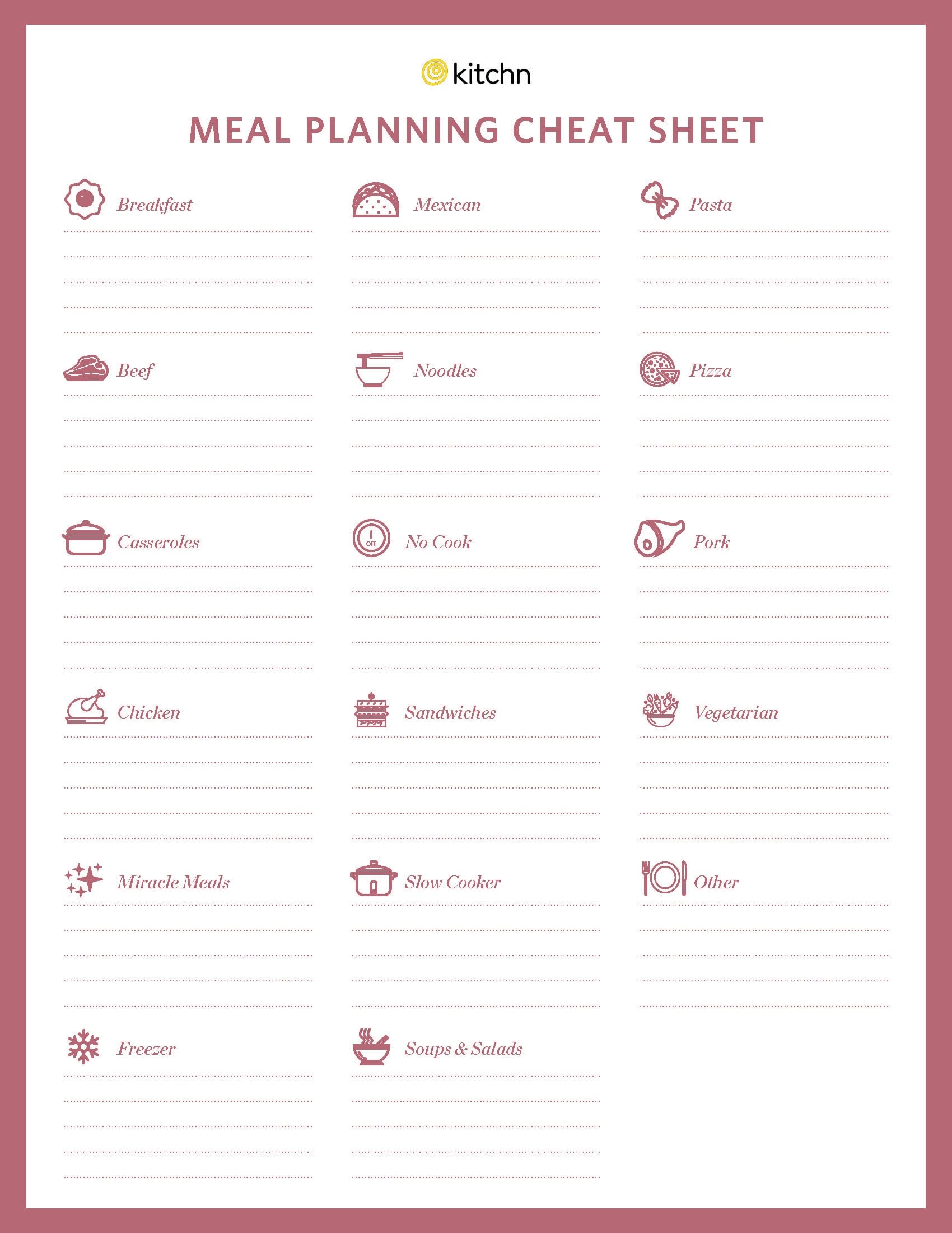 Download Recipe Cheat Sheet For Meal Planning The Kitchn