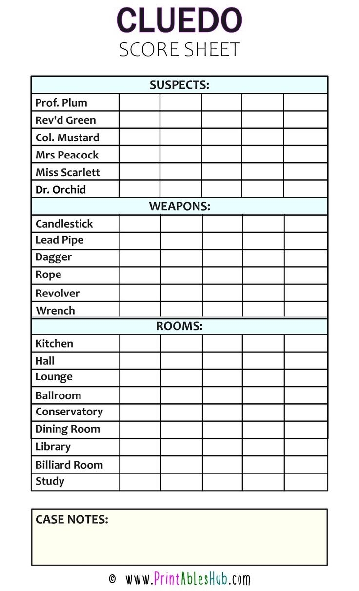 Board Game Clue Sheets 10 Free PDF Printables Printablee