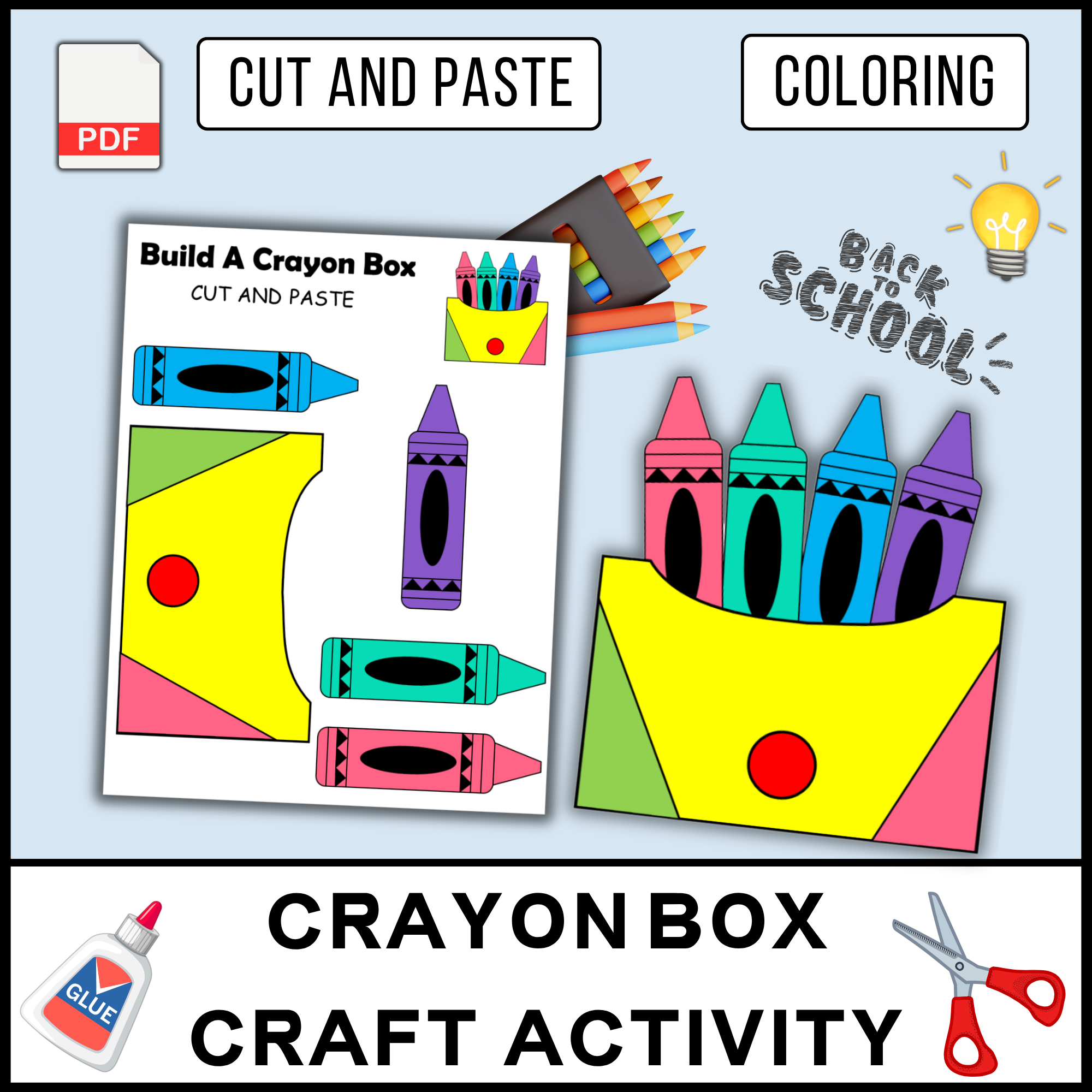 Crayon Box Craft For Kids Back To School Activity Cut And Paste Printable Coloring Page First We Made By Teachers
