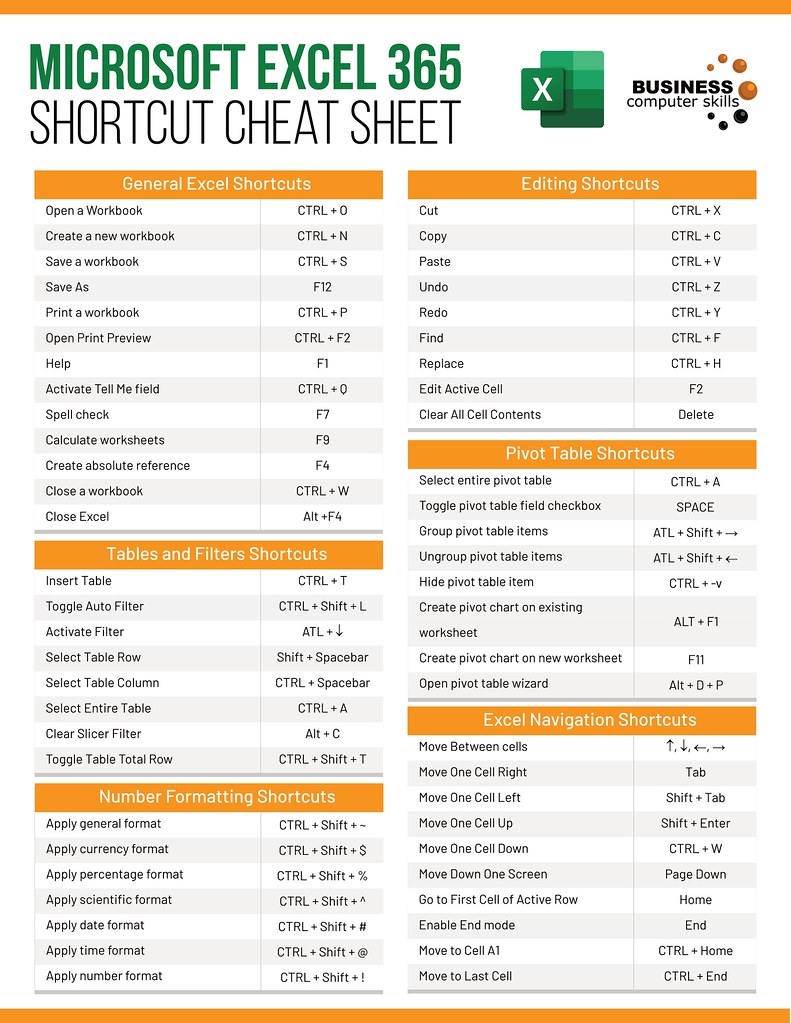 Excel Shortcuts Cheat Sheet Printable PDF