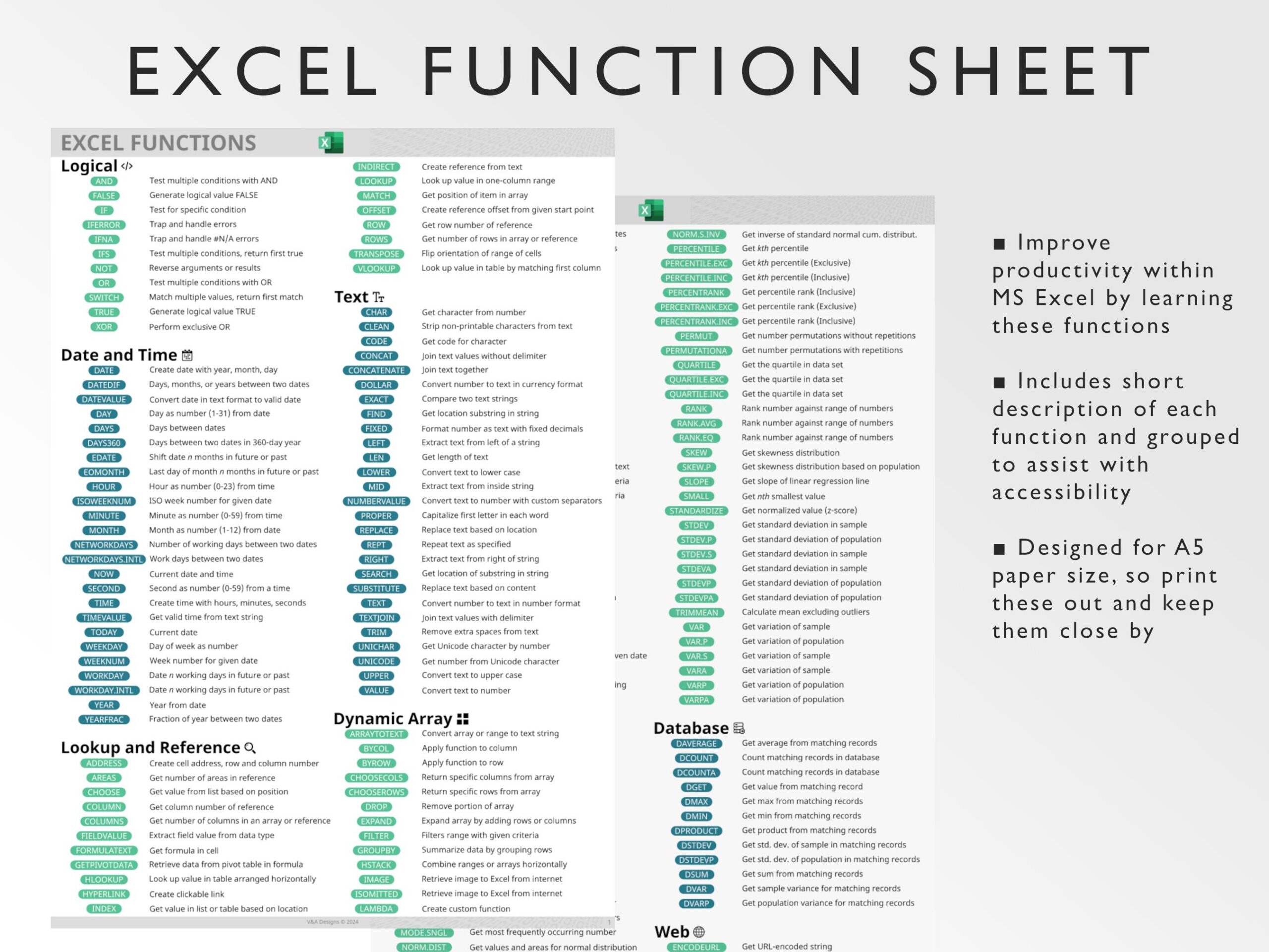 Microsoft Excel Functions Printable Excel Cheat Sheet Workbook Productivity Excel Formulas Windows Mac Excel Ninja Green Etsy