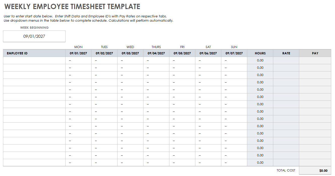 Free Weekly Timesheet And Time Card Templates Smartsheet