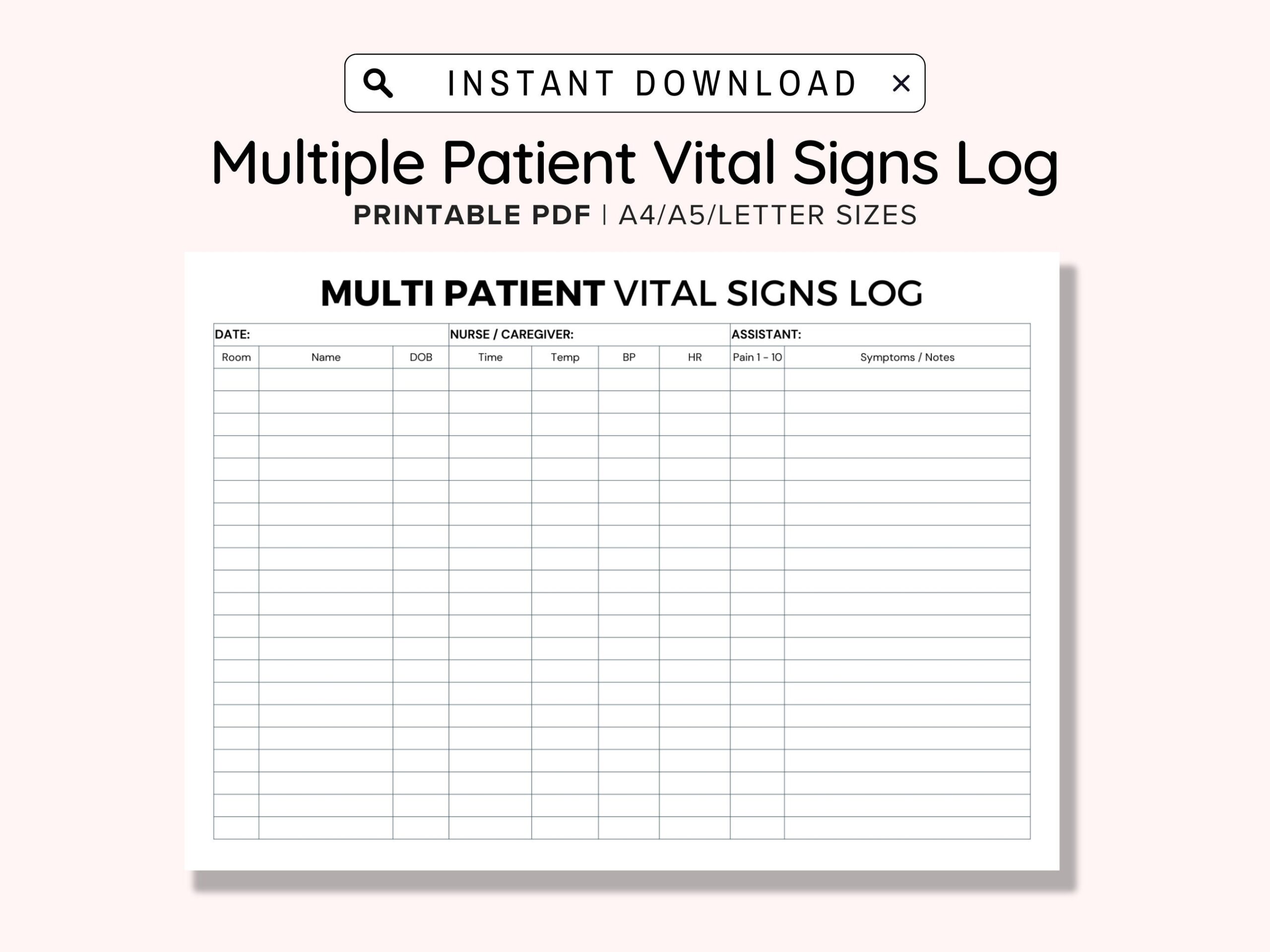 Printable Vitals Tracker Vitals Log Sheet Vital Sign Log Nursing Vitals Blood Pressure Tracker