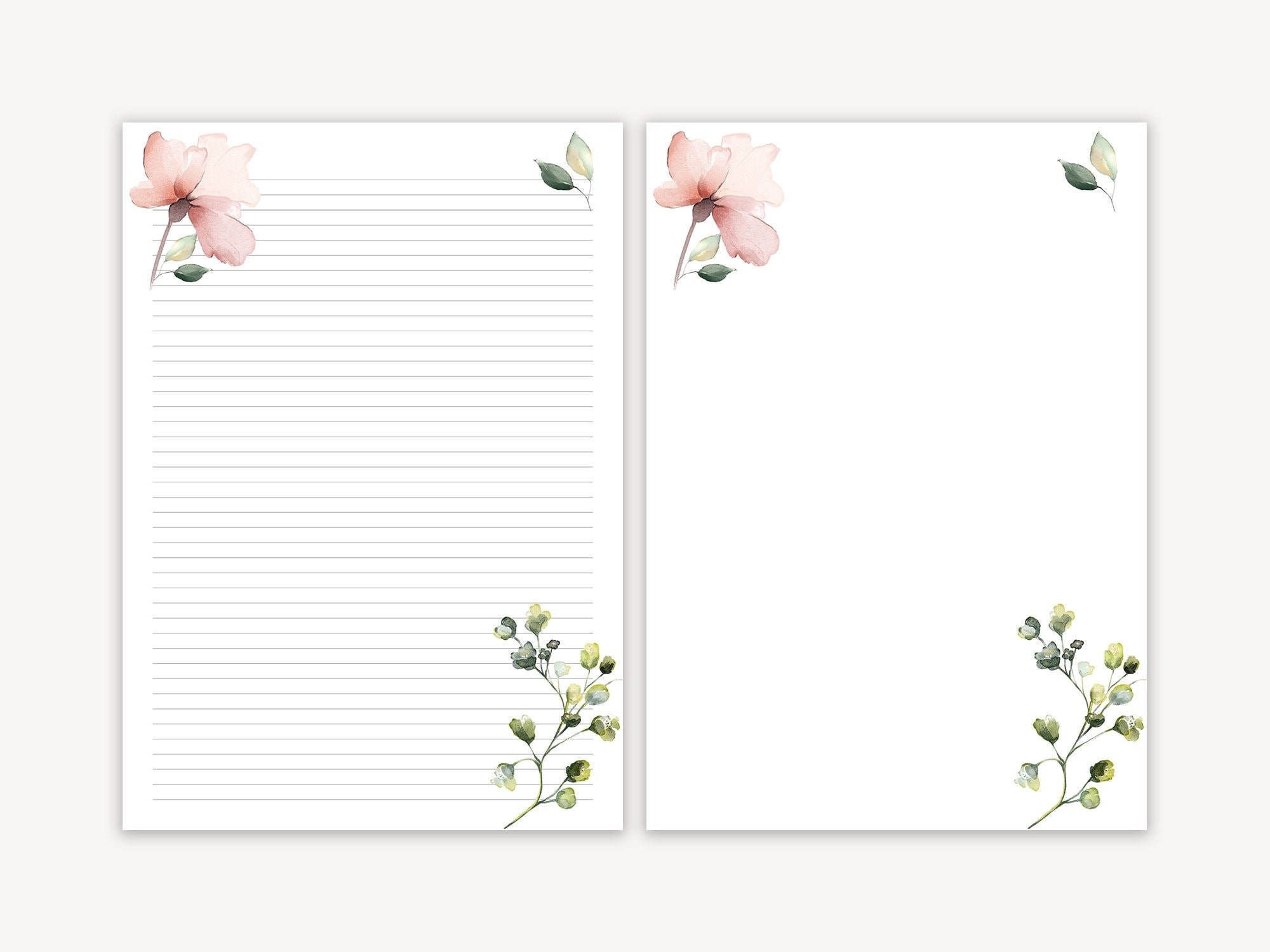 Floral Printable Letter Paper Line Sheet Floral Printable Letter Paper Writing Paper Printable Letter Writing Set Etsy