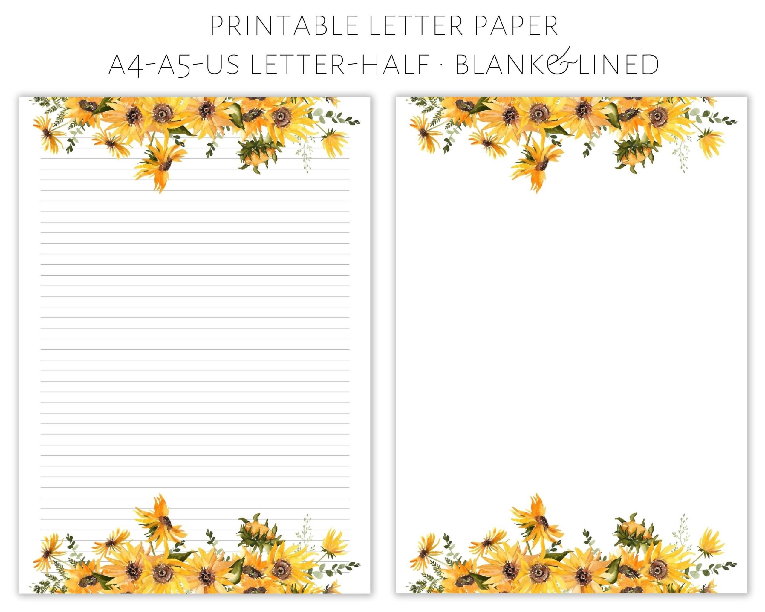 Sunflower Printable Letter Paper Floral Stationery digital Download Etsy