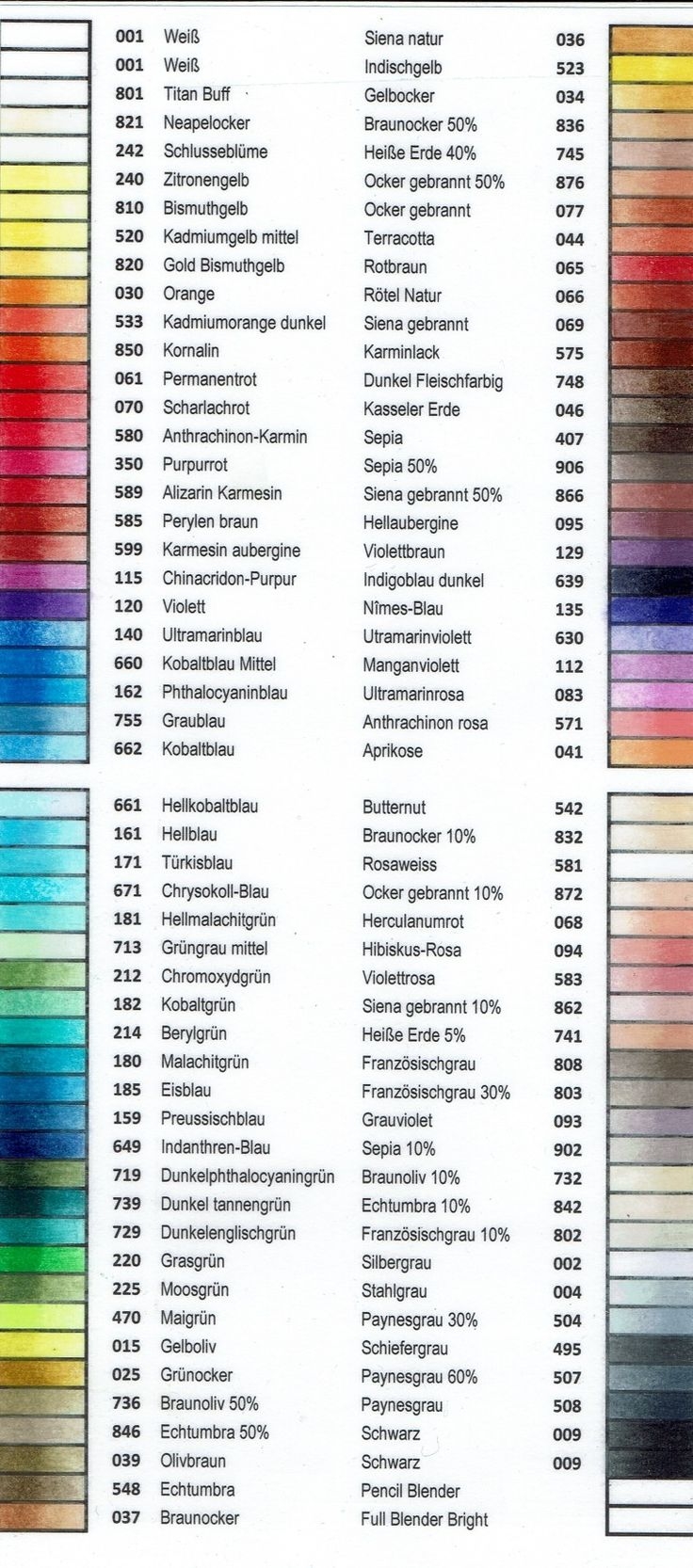 Caran D Ache Luminance Artists Pencils Colour Chart