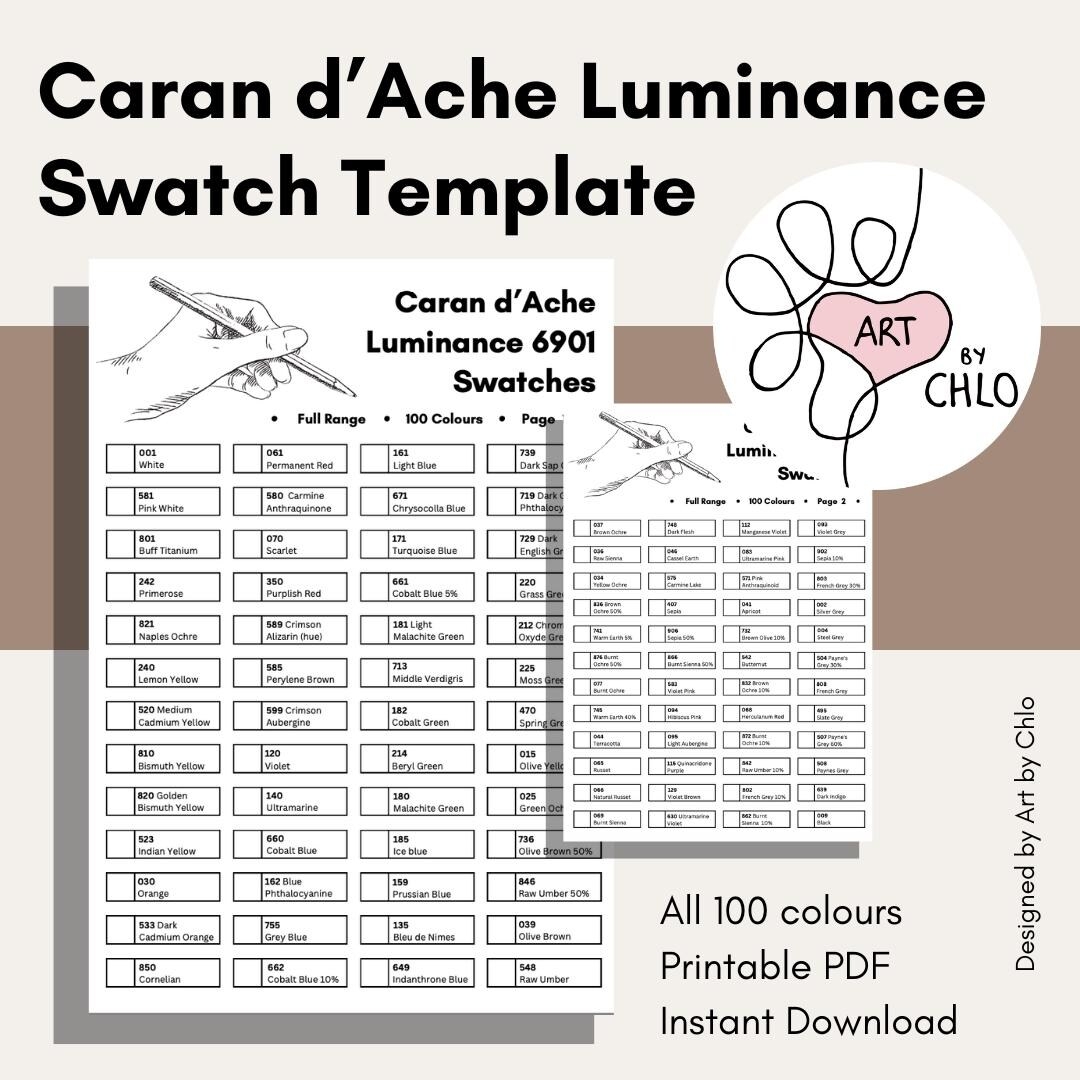 Luminance 100 Swatch Chart Print And Colour Blank Template For Artist Coloured Pencils Set Caran D ache 2XPDF Swatches New And Classic Names Etsy