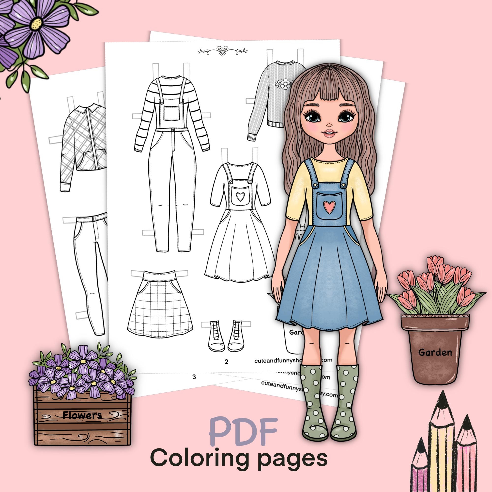 Paper Doll Printable With Clothes Coloring Page Book Outline Digital Download Dress Up Cutout Toy Game Activity Play For Children Etsy