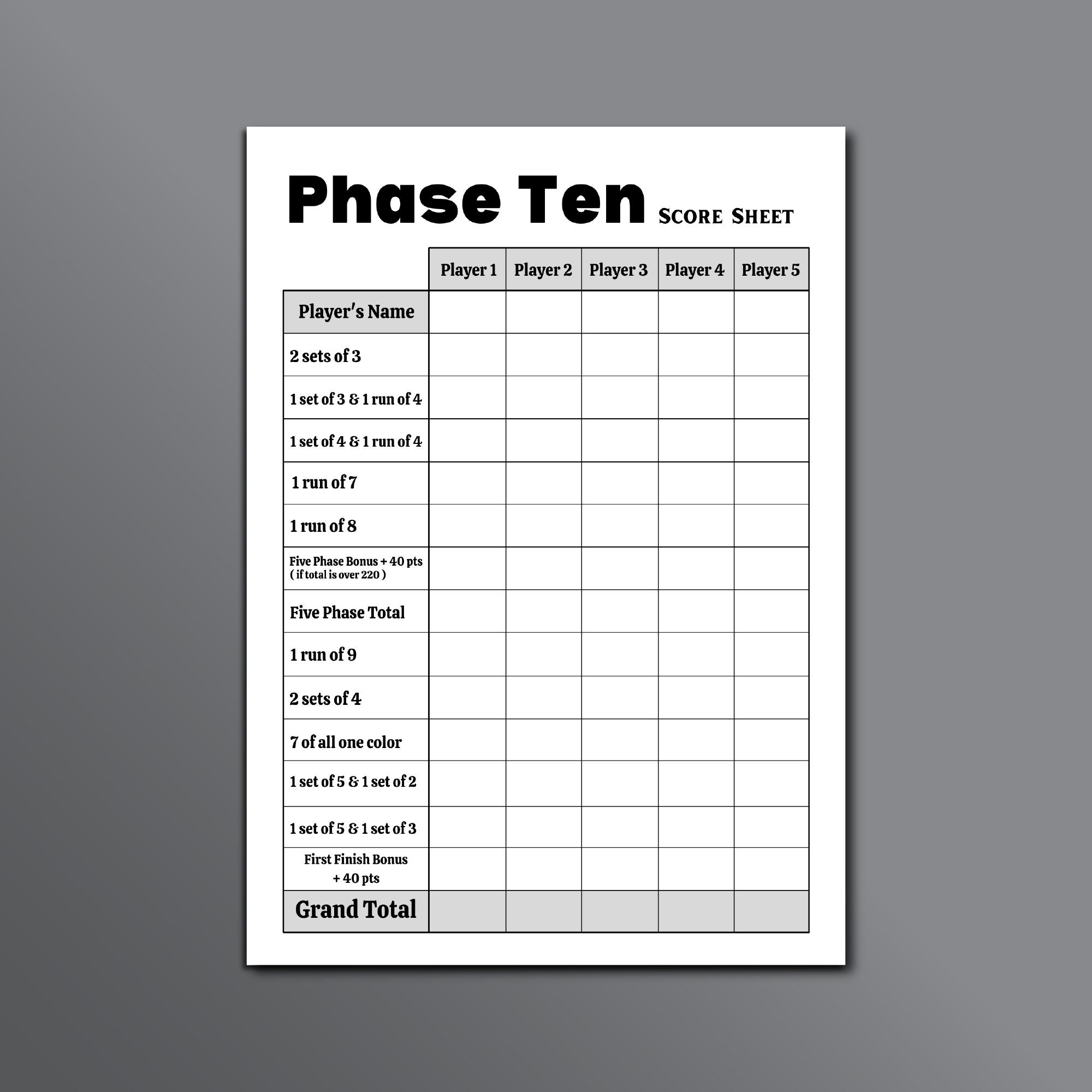 Phase Ten Score Card Phase Ten Scoresheet Phase Ten Score Pads Printable File PDF Download 8 5×11 Etsy Finland