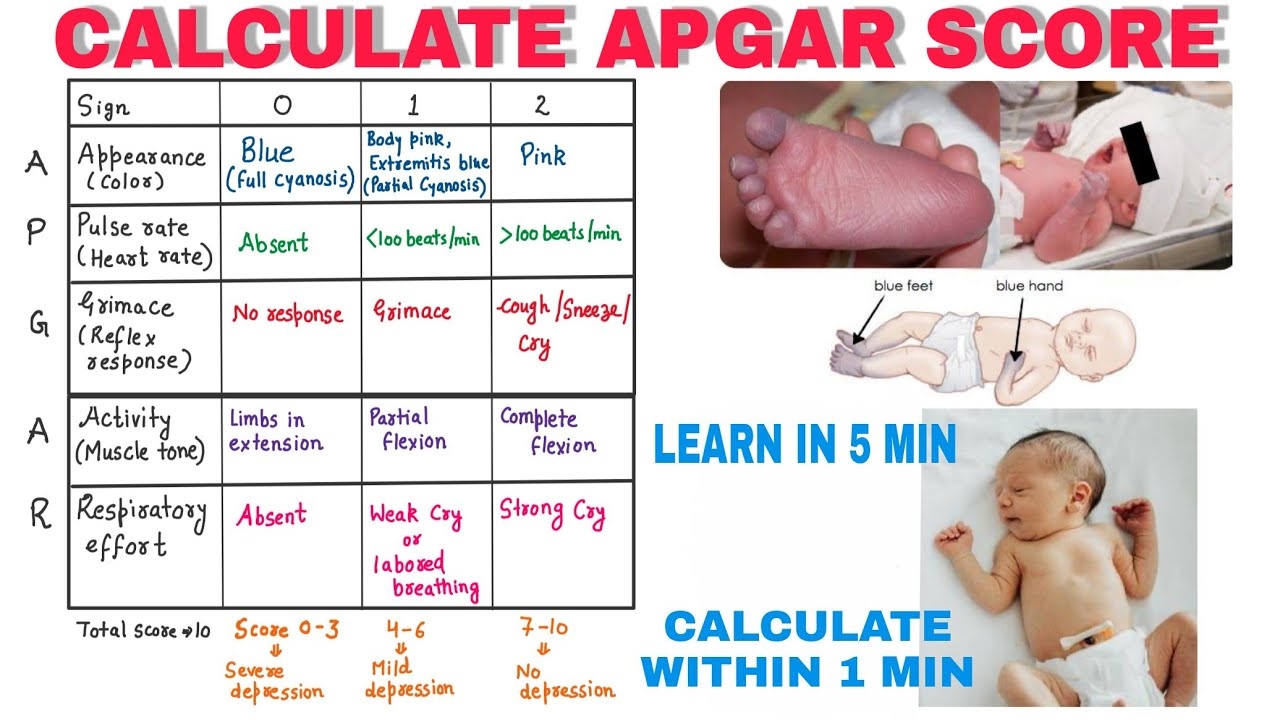 The Apgar score is a quick and simple way to assess a newborn’s health and well-being in the first few minutes after birth. It evaluates the baby’s heart rate, respiration, muscle tone, reflexes, and color, giving them a score of 0-2 for each category.