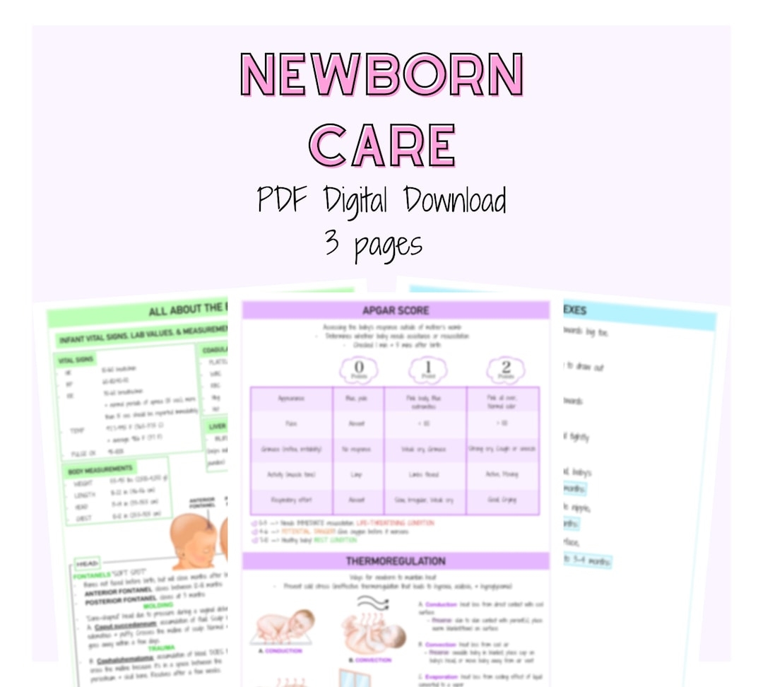 Newborn Care Ob maternity Nursing Notes APGAR Score Infant Vital Signs Thermoregulations Reflexes Etsy