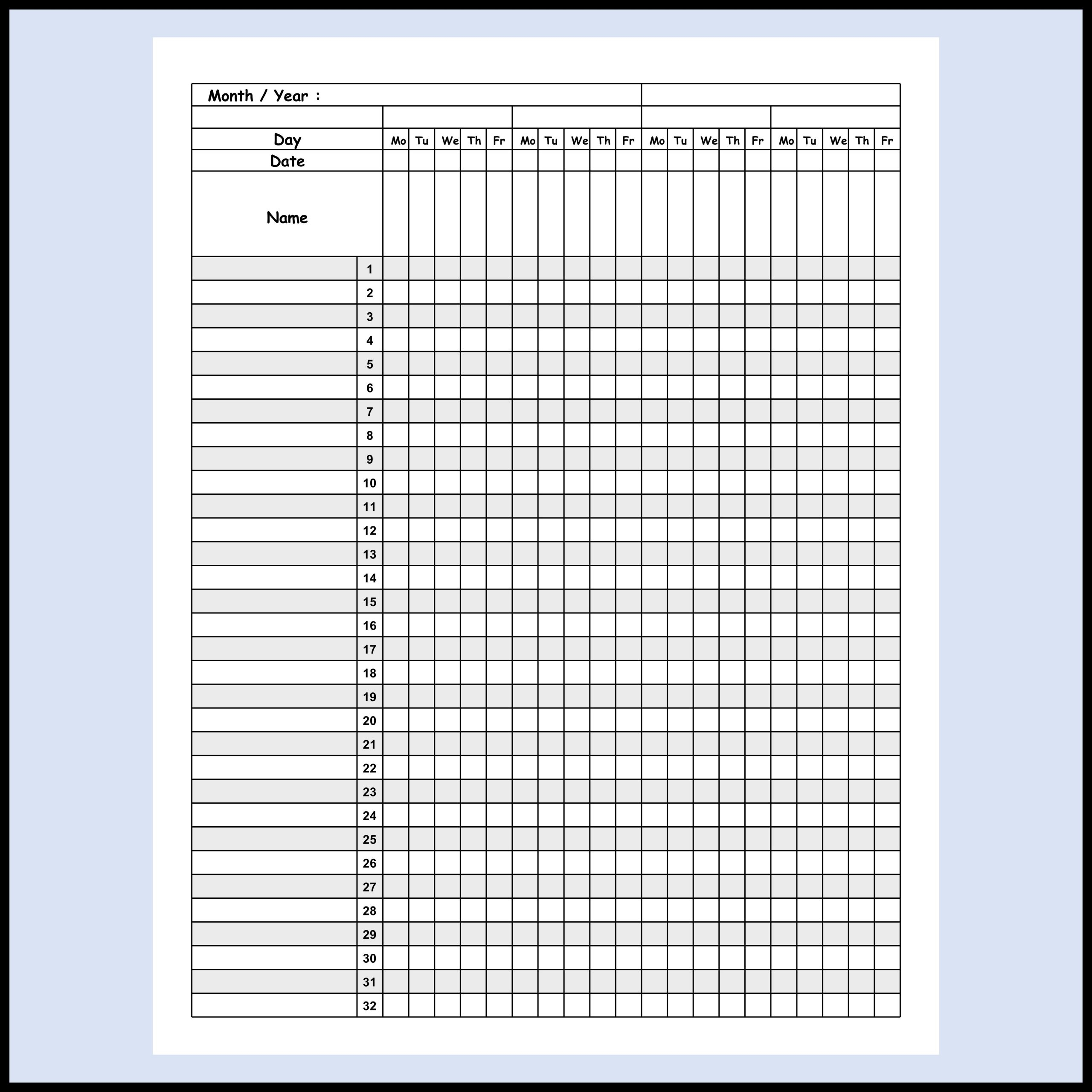 Attendance Sheet Printable Form Digital File Instant Download Editable Etsy
