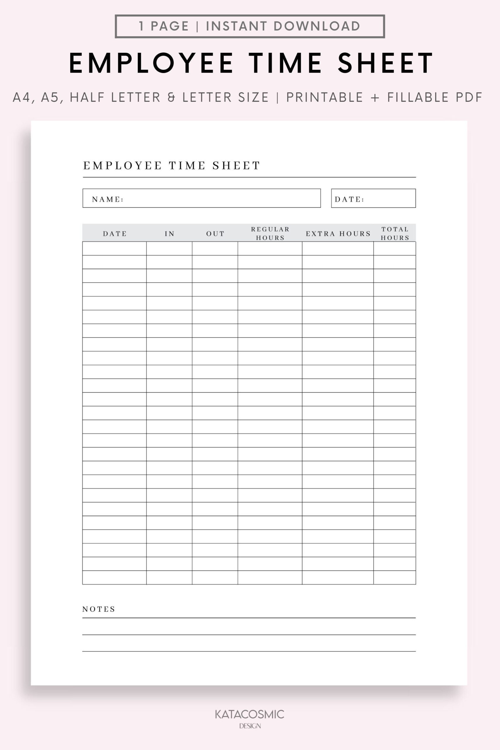 Printable Employee Time Sheet Hours Worked Log And Weekly Time Tracker Ideal For Your Small Business Etsy