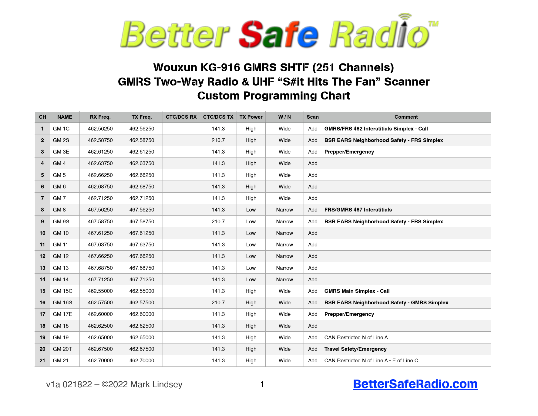 From emergency services to outdoor adventures, GMRS frequencies play a crucial role in keeping you connected. With a printable chart, you can quickly identify the frequencies you need for your specific situation, ensuring clear and reliable communication.