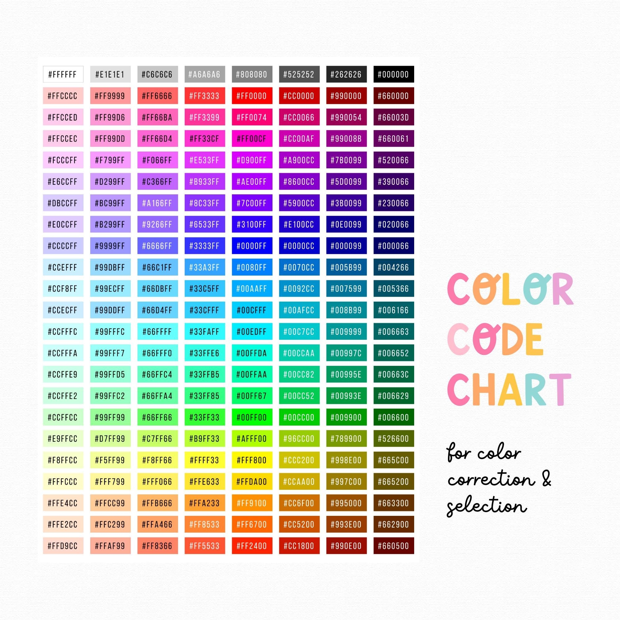 HEX Code Color Chart Printable Designer Quick Reference Cheat Sheet For Color Correction Etsy UK