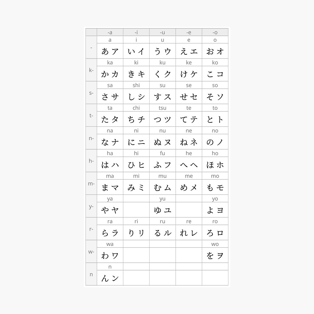 Hiragana And Katakana Chart Nihongo Flashcards