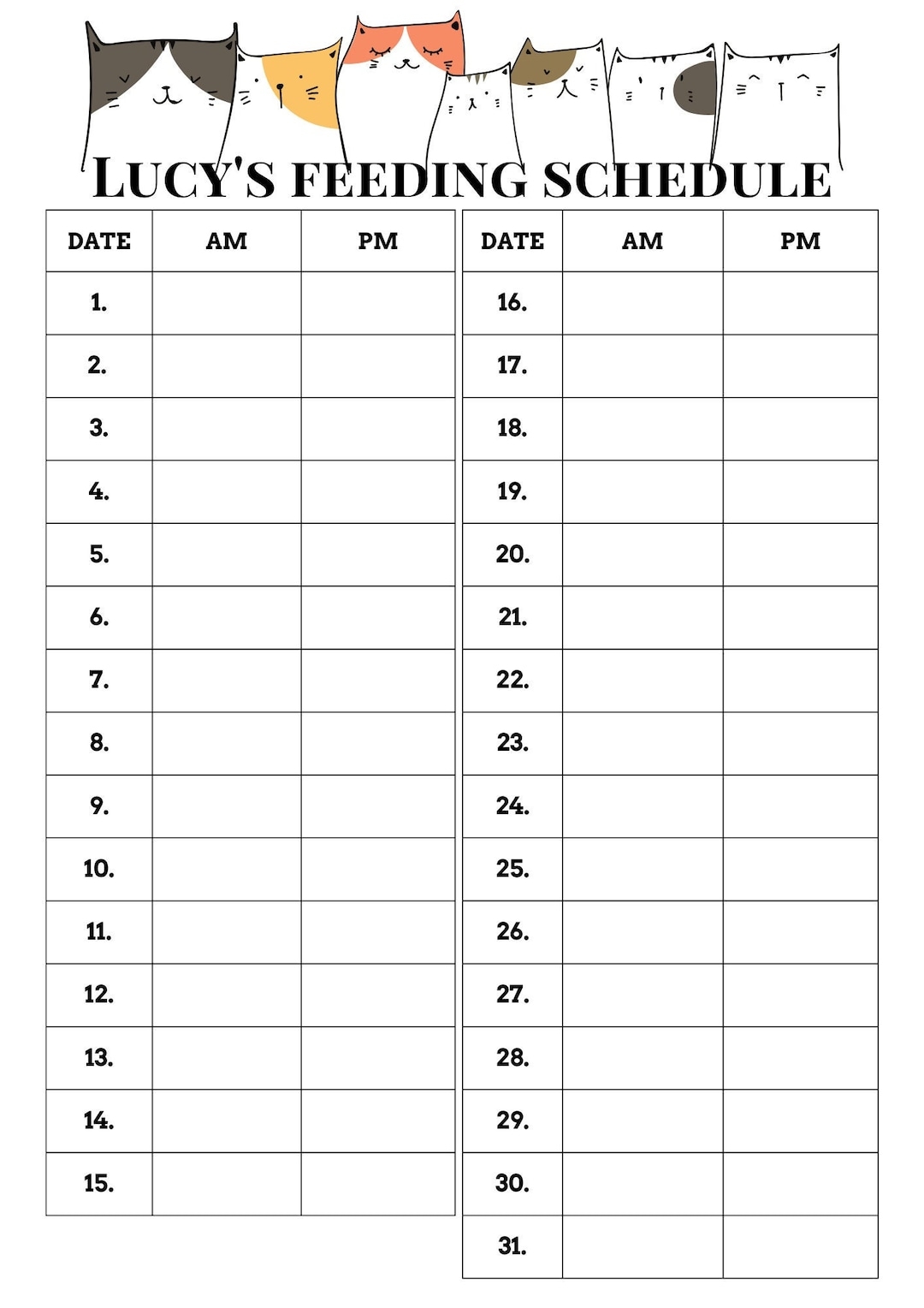 Custom Cat Feeding Schedule Personalized Printable Planner PDF Download Etsy