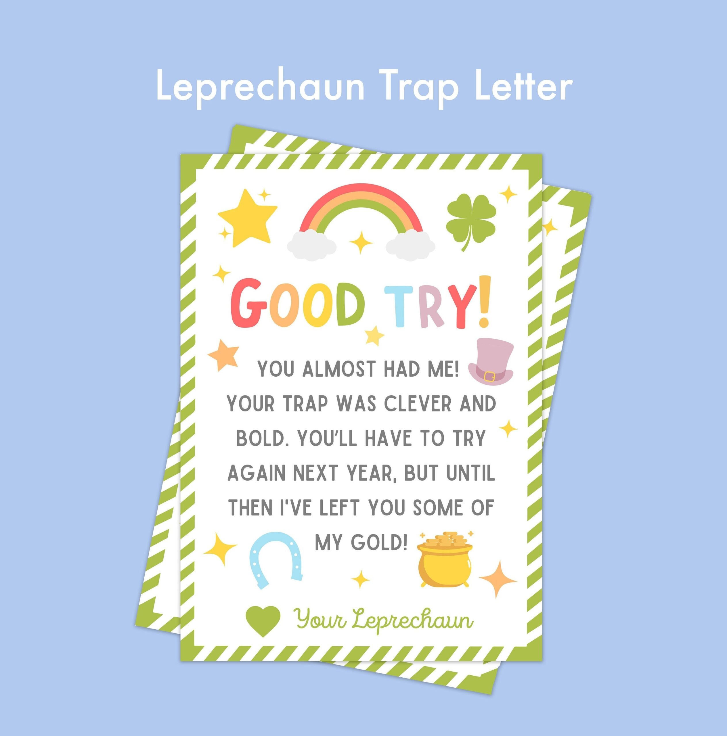 So why not add a touch of whimsy to your St. Patrick’s Day celebration this year with a printable leprechaun trap letter? It’s a simple yet enchanting way to create lasting memories and bring a little bit of magic into your home.