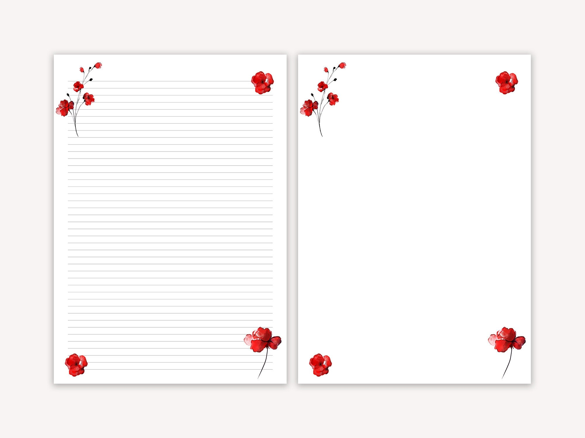 Floral Letter Writing Paper Lined Stationery Set digital Download Etsy