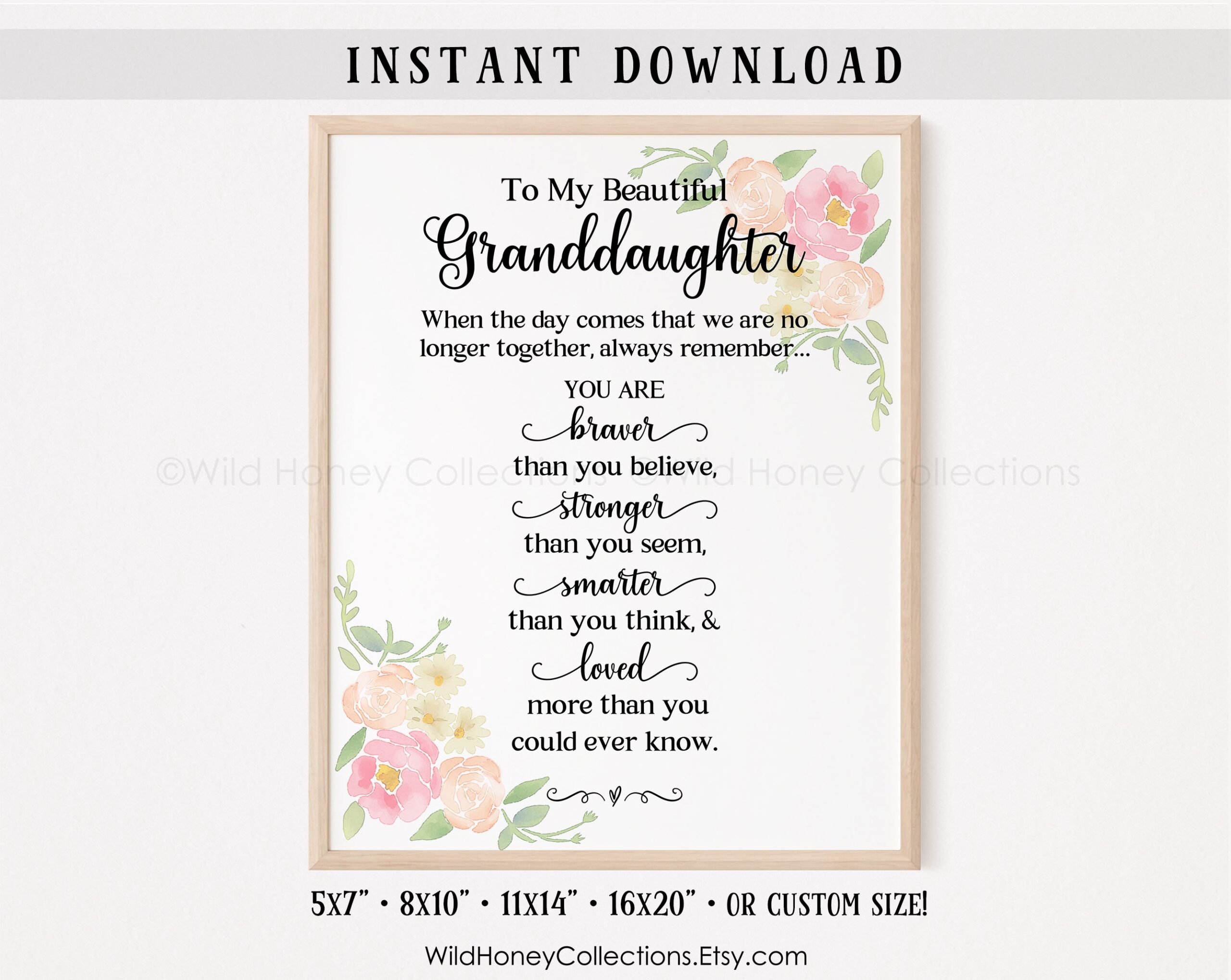 Granddaughter Poem Printable Art Braver Stronger Gift digital Download Etsy UK