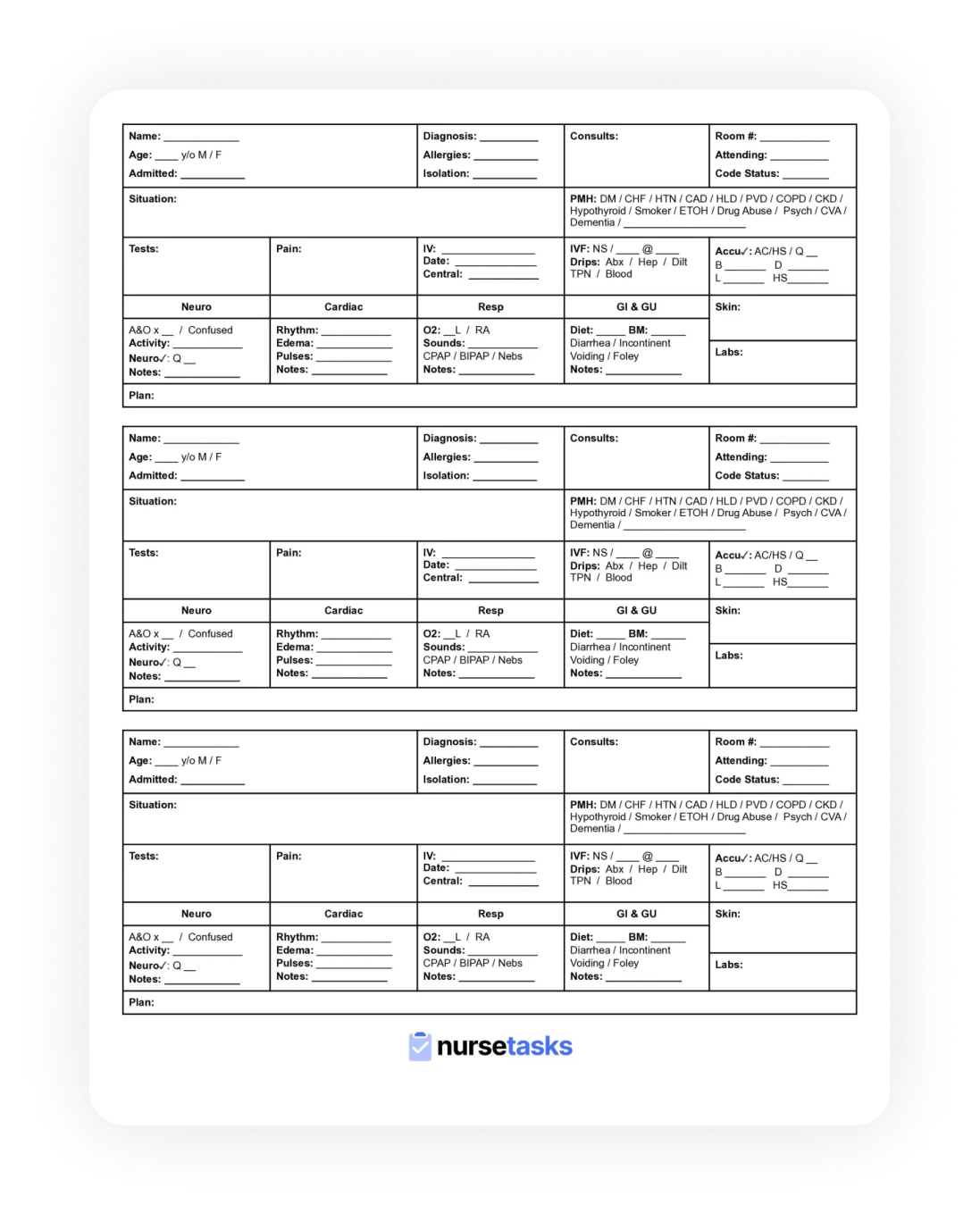 printable nursing report sheet