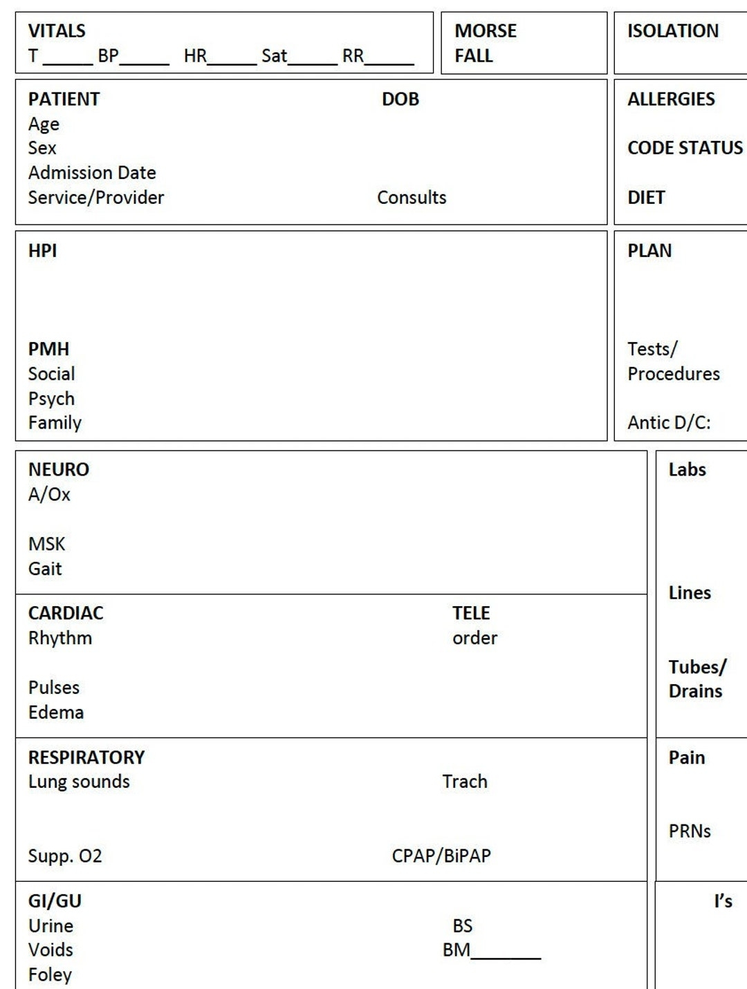 Printable Nursing Report Sheet Nurse Brain Sheet Single Patient Reporting Template ICU Nurses Resources Med Surg A4 And US Letter Etsy