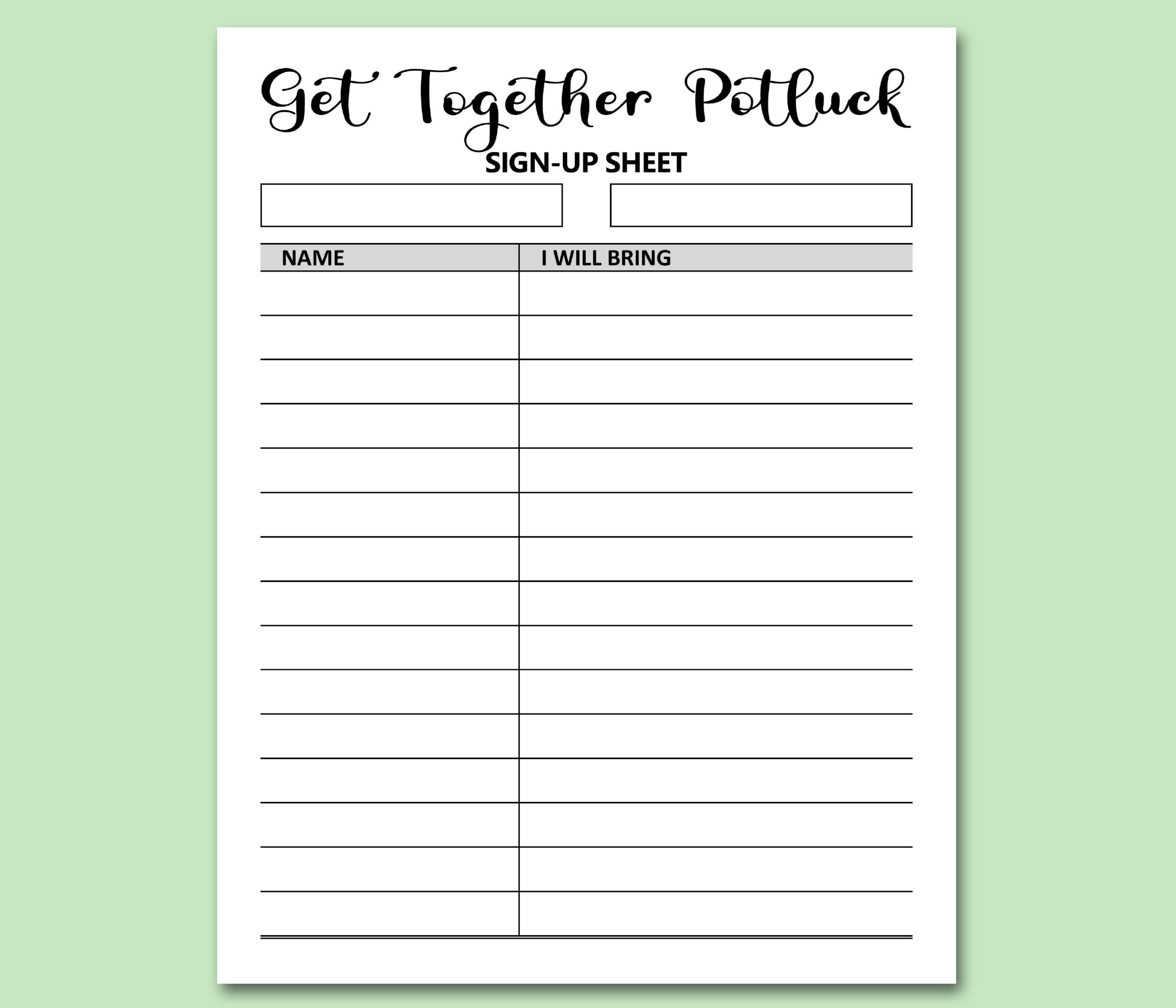 Get Together Potluck Sign Up Sheet Printable Signup Form Potluck Dinner Friends Church Social Reunion Event Games Activities Letter A4 Etsy