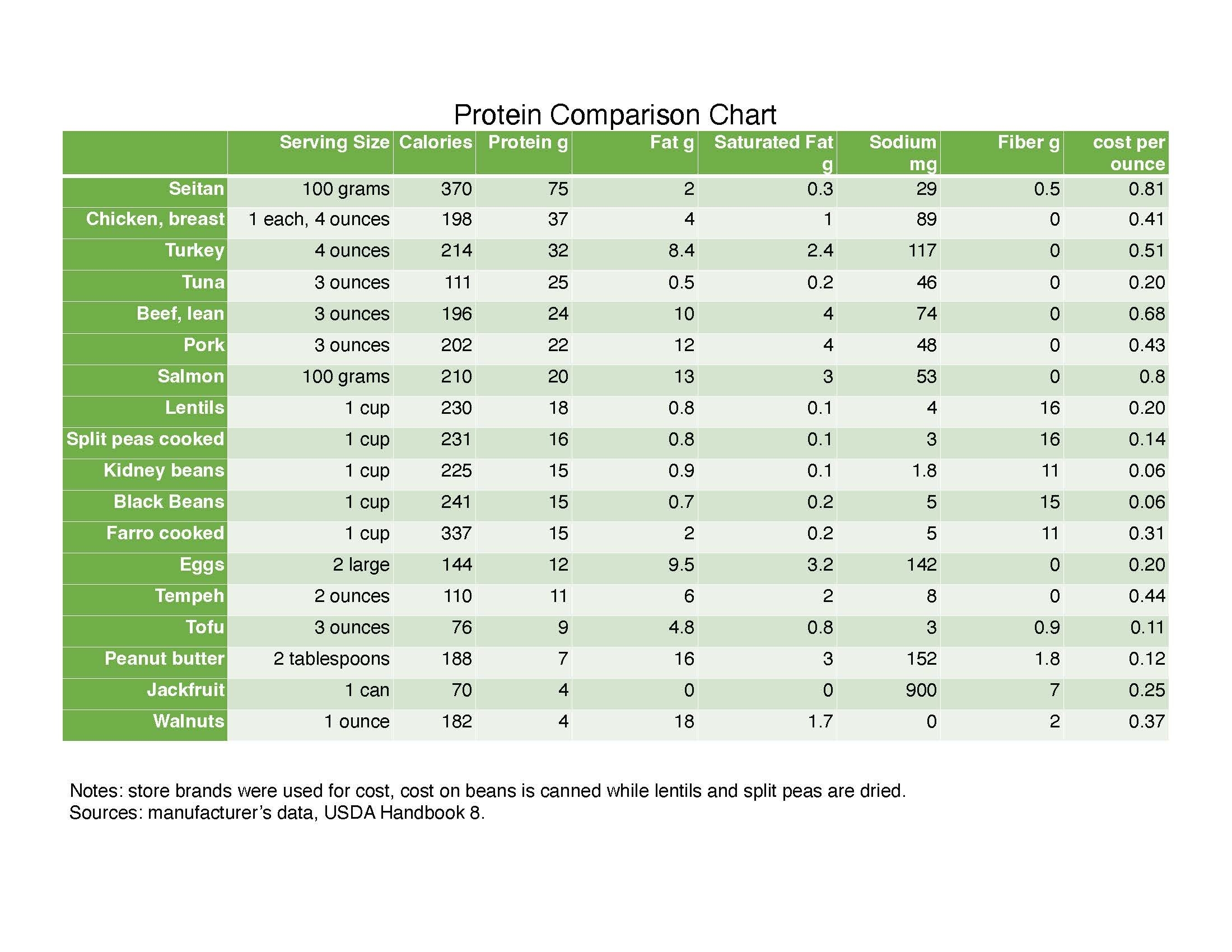 Protein Comparison PDF Printable Handout Food And Health Communications