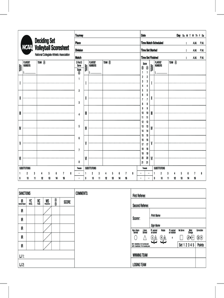 Volleyball Score Sheet Fill Out Sign Online DocHub