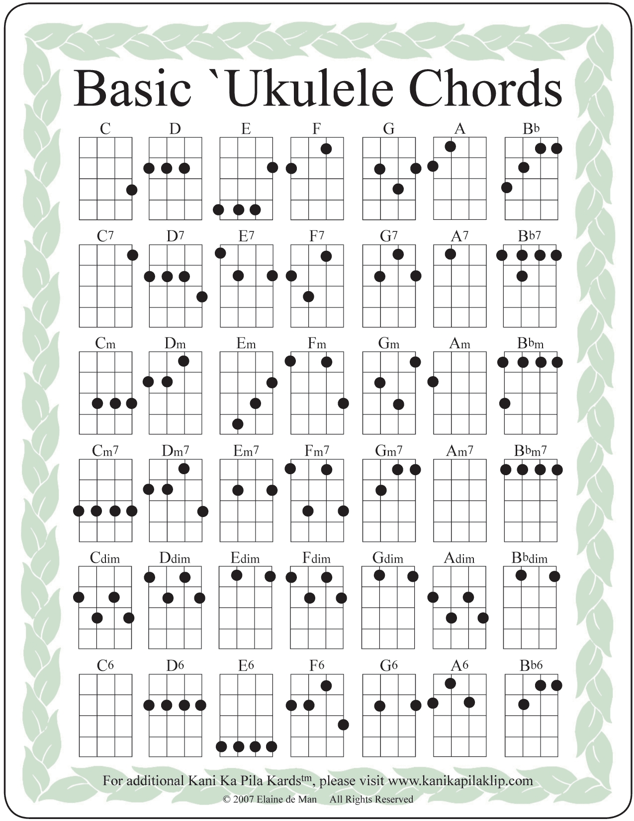 ukulele chord chart printable